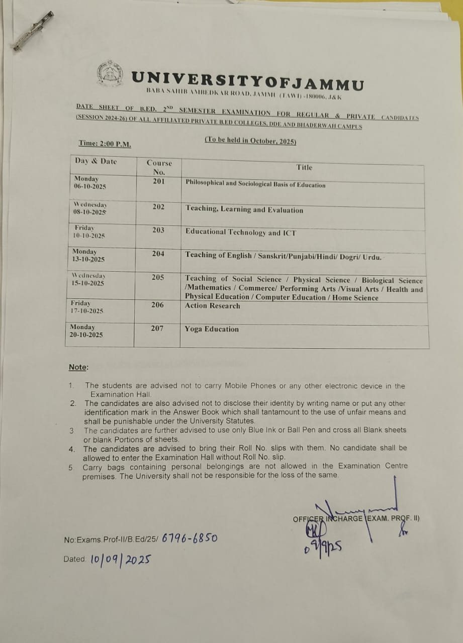 | 7 | Date sheet of B.ed. 2nd Semester Examination (Session 2023-2025) | Download |