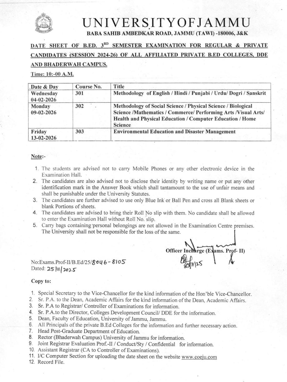 | 3 | Date sheet of B.ed 4th semester examination for regular and private candidate session 2023-25 | Download |